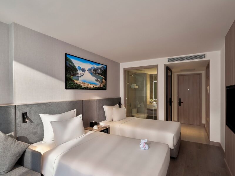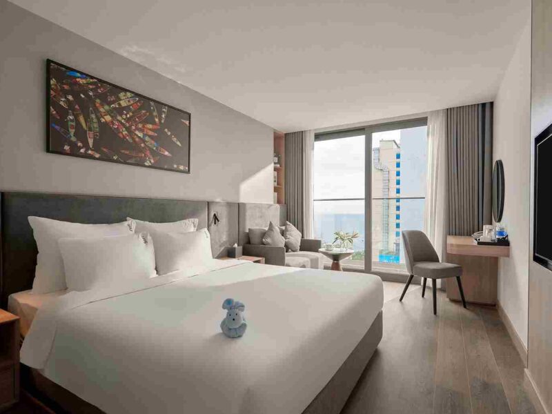 Khách sạn mang phong cách boutique hiện đại, sang trọng với hệ thống phòng nghỉ đa dạng – từ Deluxe City View đến President Suite Sea View, tất cả đều được thiết kế tinh tế và trang bị đầy đủ tiện nghi như TV màn hình phẳng, điều hòa, minibar, wifi miễn phí và ban công thoáng đãng.