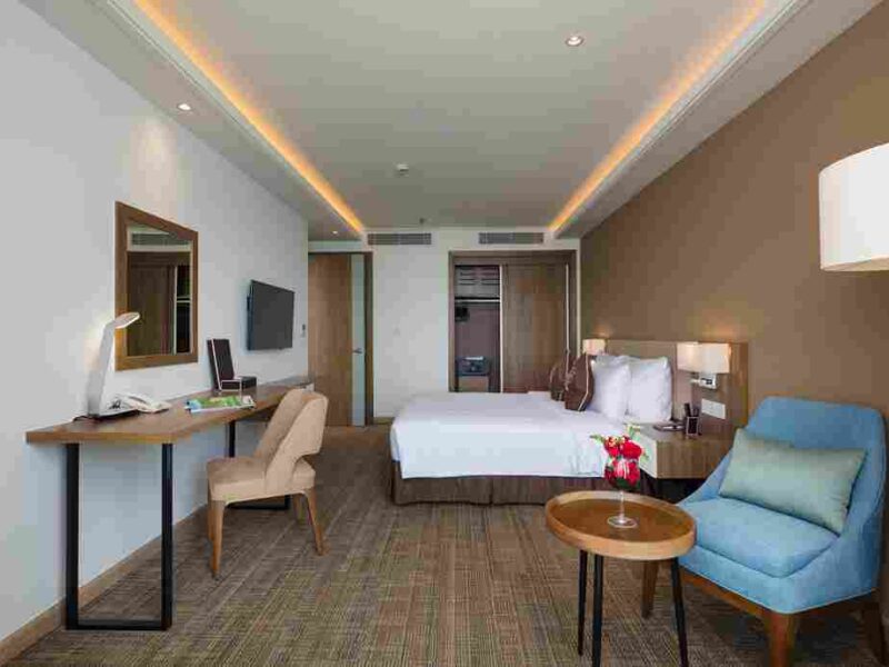 Phòng Superior có diện tích 28m², được bố trí tại tầng 1 và tầng 2 của khách sạn. Mỗi phòng đều có ban công hướng ra khu vườn xanh mát, tạo cảm giác thư giãn và yên bình. Phòng được trang bị đầy đủ tiện nghi như TV LCD 32”, truyền hình cáp HD, bàn làm việc, két an toàn, tủ lạnh nhỏ, máy sấy tóc, trà & cà phê miễn phí, áo ngủ, dép đi trong phòng và nước suối hàng ngày.