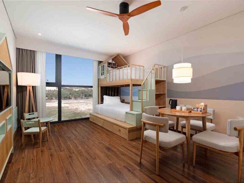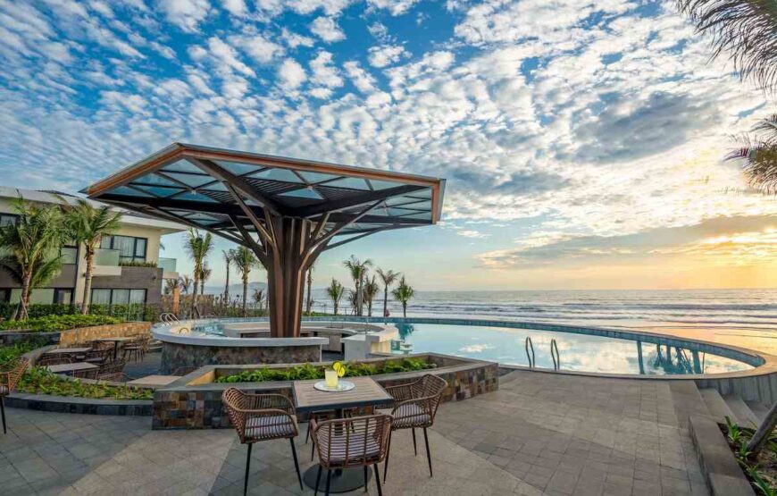 Nằm ngay trên bãi Suối Nước – một trong những bờ biển đẹp và tương đối hoang sơ tại Mũi Né, Radisson Resort Mũi Né là dự án khu nghỉ dưỡng cao cấp đầu tiên của Radisson Hotel Group tại khu vực Phan Thiết. Phong cách thiết kế Scandinavian kết hợp cùng dấu ấn văn hóa Chăm tạo nên không gian vừa tối giản, vừa đầy bản sắc. Toàn khu gồm khoảng 126 phòng nghỉ và biệt thự hướng biển, nhiều villa có hồ bơi riêng và vườn xanh, tối ưu sự thư giãn và riêng tư cho du khách
