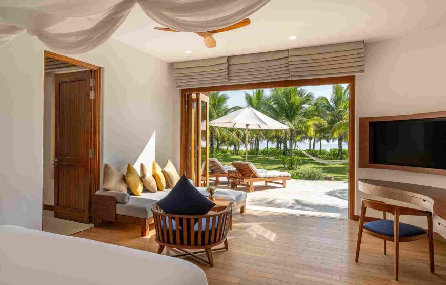 Tọa lạc ngay sát bãi biển tuyệt đẹp của Bãi Dài, Beach Front Four-Bedroom Pool Villa là lựa chọn hoàn hảo cho những ai mong muốn trải nghiệm kỳ nghỉ dưỡng đẳng cấp trong không gian riêng tư và sang trọng. Với diện tích rộng lớn, lên đến hơn 300m², biệt thự sở hữu 4 phòng ngủ thiết kế biệt lập và tầm nhìn toàn cảnh đại dương tuyệt mỹ.