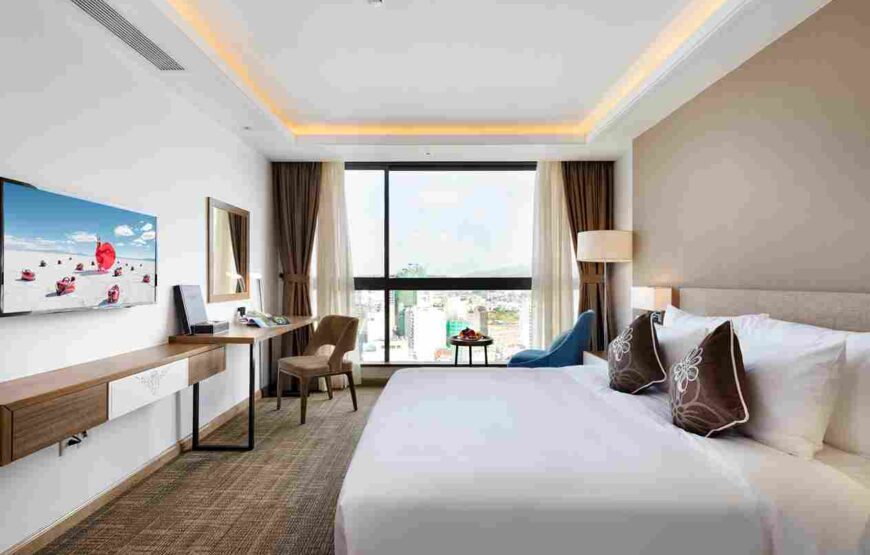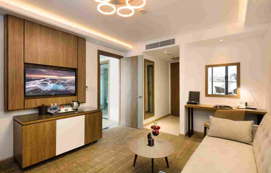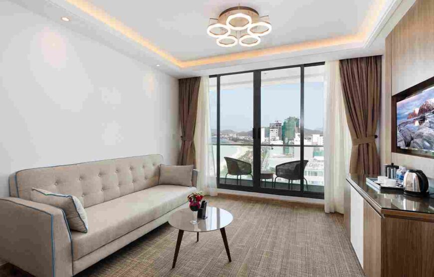 Phòng Comodo Grand Suite rộng khoảng 60m², bao gồm một phòng ngủ và một phòng bếp riêng biệt, hướng nhìn toàn cảnh biển và thành phố. Phòng được trang bị tiện nghi cao cấp, phù hợp cho gia đình hoặc khách lưu trú dài ngày, mang đến cảm giác như ở nhà.