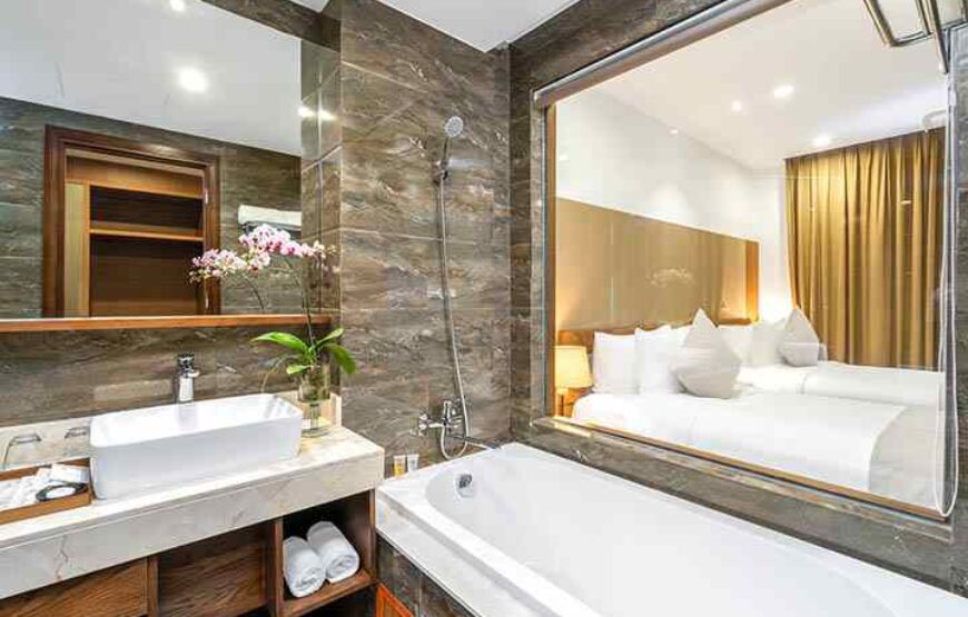 Bước ra ban công, thả mình giữa làn gió trong lành và phóng tầm mắt ra đại dương. Hạng phòng này phù hợp cho những ai muốn tận hưởng thiên nhiên một cách trọn vẹn và tiện nghi đầy đủ. Thiết kế hiện đại, không cầu kỳ nhưng vẫn đủ tinh tế để mang lại cảm giác thoải mái như ở nhà. Dành cho những ai yêu sự gọn gàng, riêng tư và thích tận hưởng chuyến đi một cách trọn vẹn nhất.