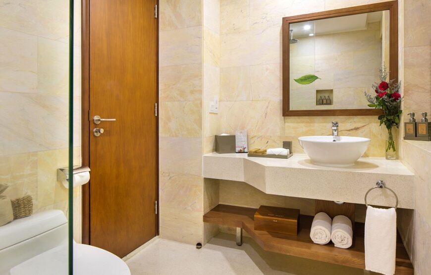 Phòng Deluxe Garden View rộng rãi, được thiết kế tinh tế với ban công riêng hướng ra khu vườn nhiệt đới xanh mát. Nội thất hiện đại bao gồm giường cỡ lớn hoặc hai giường đơn, phòng tắm với vòi sen, TV màn hình phẳng, minibar và bàn làm việc. Đây là lựa chọn lý tưởng cho những ai tìm kiếm sự yên bình và gần gũi với thiên nhiên.