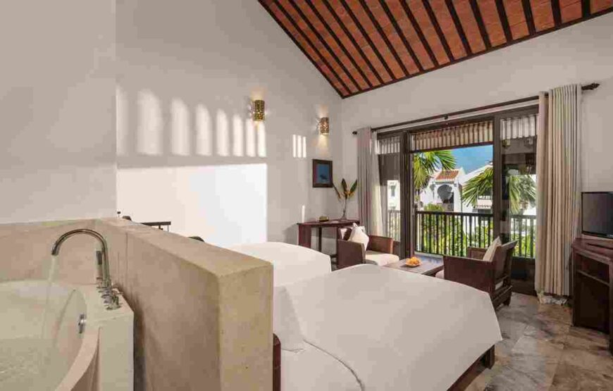 Các phòng được bố trí từ tầng trệt đến các tầng cao, nổi bật với chi tiết đá cẩm thạch trắng thanh lịch và gỗ ấm áp, mở ra mái hiên hoặc ban công hướng về khu vườn nhiệt đới xanh mướt. Tại đây, bạn có thể tận hưởng trọn vẹn cảm giác thư giãn với phòng tắm đứng ngoài trời đầy mới mẻ và gần gũi thiên nhiên.