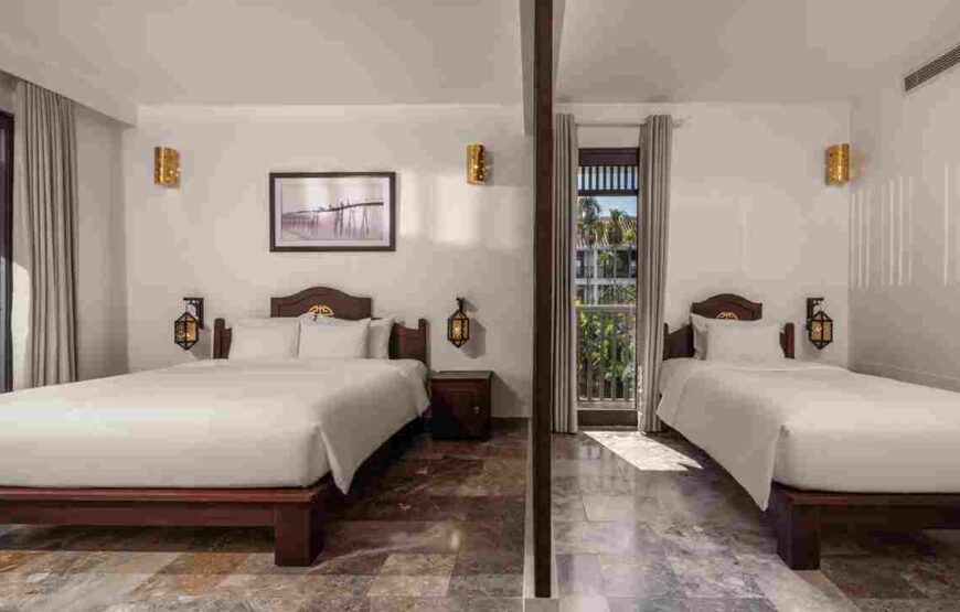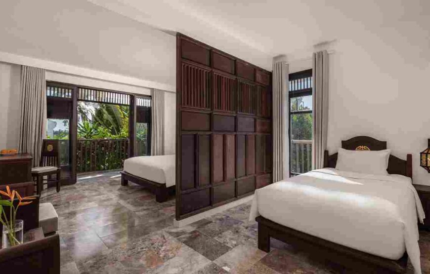 Chớm nở nét Việt dịu dàng bên thiên nhiên ngoài khung cửa, các phòng được thiết kế nhẹ nhàng, chia thành hai gian riêng biệt nhưng vẫn ngập tràn ánh nắng mai. Không gian đảm bảo sự riêng tư cho từng thành viên, đồng thời giữ được sự kết nối hài hòa. Lựa chọn lý tưởng dành cho các gia đình đang tìm kiếm sự ấm cúng và tiện nghi trong từng khoảnh khắc nghỉ ngơi.”