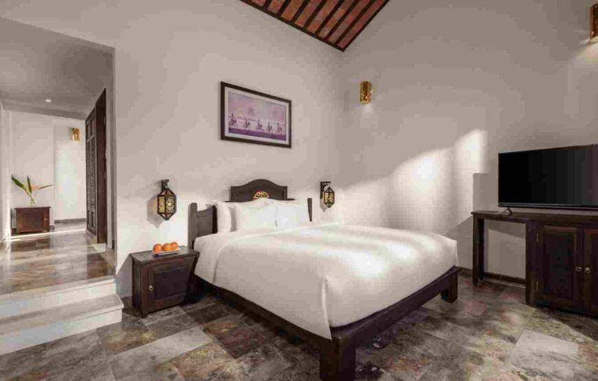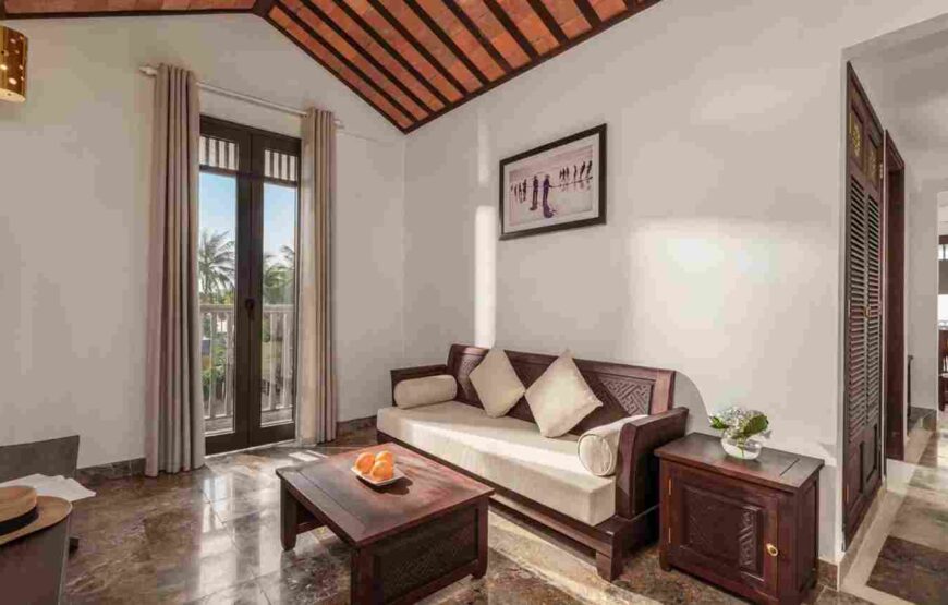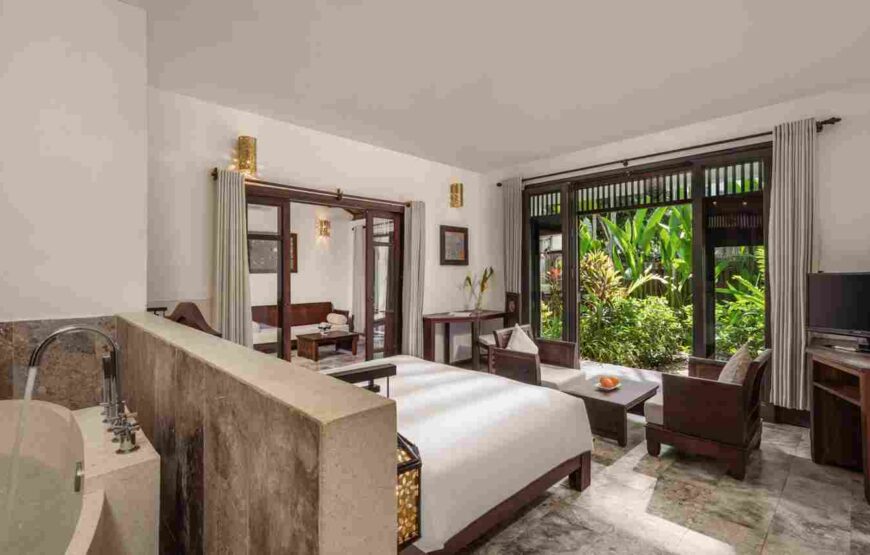 Một chốn nghỉ dưỡng đích thực giữa khu vườn truyền thống xanh mát, nơi bạn có thể thư giãn trong phòng khách riêng biệt hướng về tán cây rợp bóng. Phòng được trang bị giường Queen êm ái mang lại sự yên tĩnh tuyệt đối, cùng phòng tắm rộng rãi với bồn rửa đôi và bồn tắm, tạo nên không gian lý tưởng để tái tạo năng lượng và tận hưởng sự riêng tư trọn vẹn