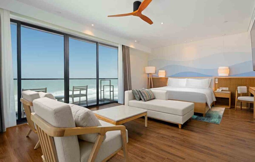 Nằm ngay trên bãi Suối Nước – một trong những bờ biển đẹp và tương đối hoang sơ tại Mũi Né, Radisson Resort Mũi Né là dự án khu nghỉ dưỡng cao cấp đầu tiên của Radisson Hotel Group tại khu vực Phan Thiết. Phong cách thiết kế Scandinavian kết hợp cùng dấu ấn văn hóa Chăm tạo nên không gian vừa tối giản, vừa đầy bản sắc. Toàn khu gồm khoảng 126 phòng nghỉ và biệt thự hướng biển, nhiều villa có hồ bơi riêng và vườn xanh, tối ưu sự thư giãn và riêng tư cho du khách